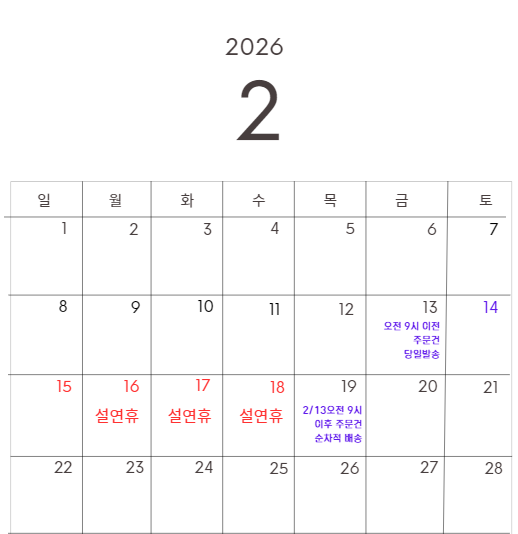 • 2/14(토)~2/18(금) 설 연휴 기간 동안